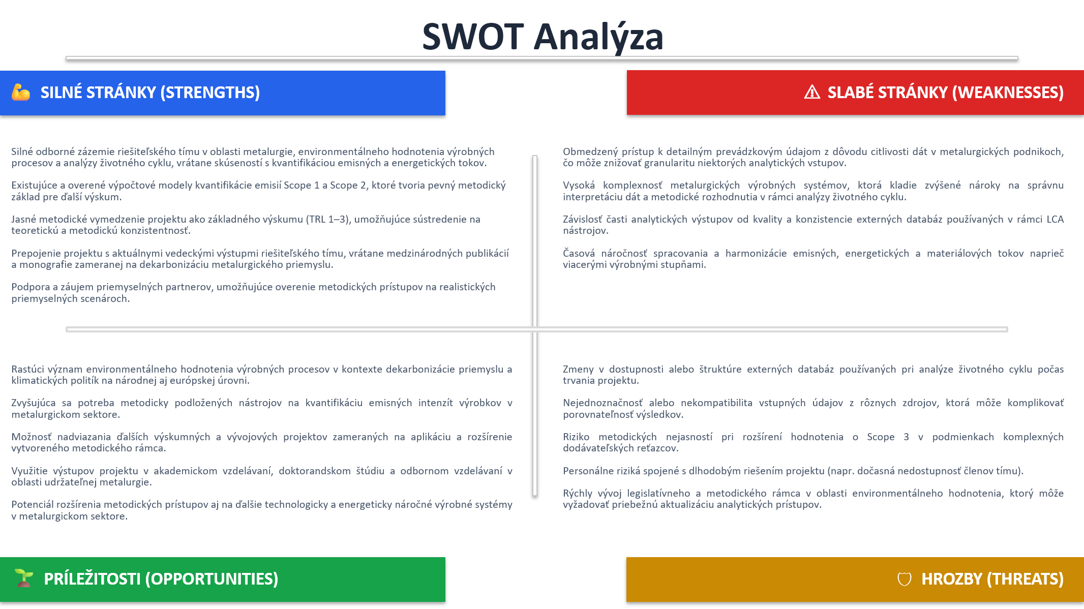 - Potenciál využitia vodíka v metalurgickom priemysle SR s cieľom zníženia produkcie CO2;